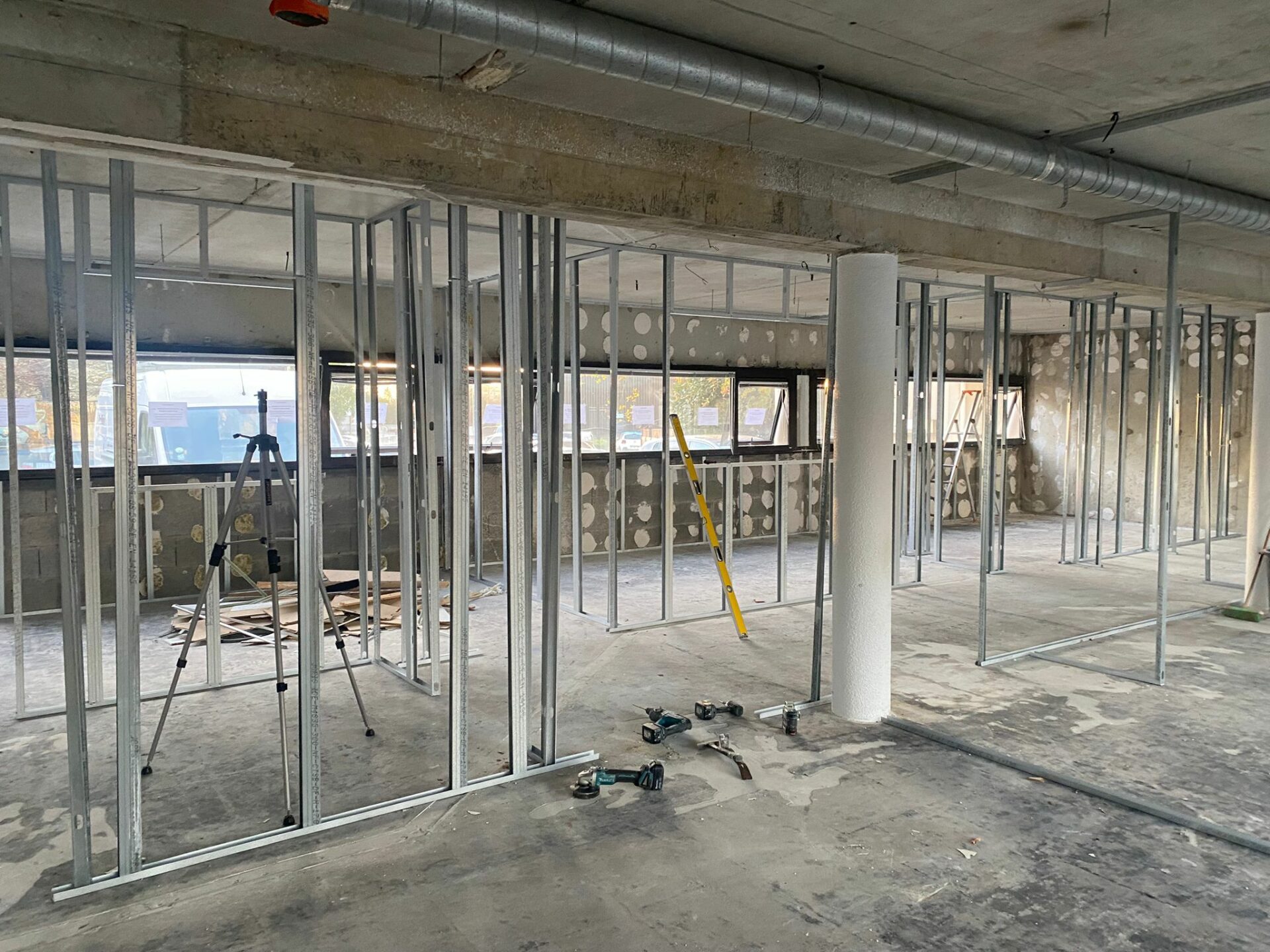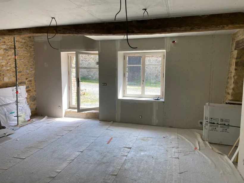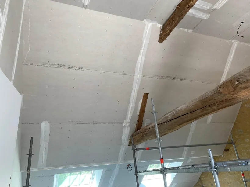 - Finition : application d'un enduit, lissage des joints et préparation pour la peinture.